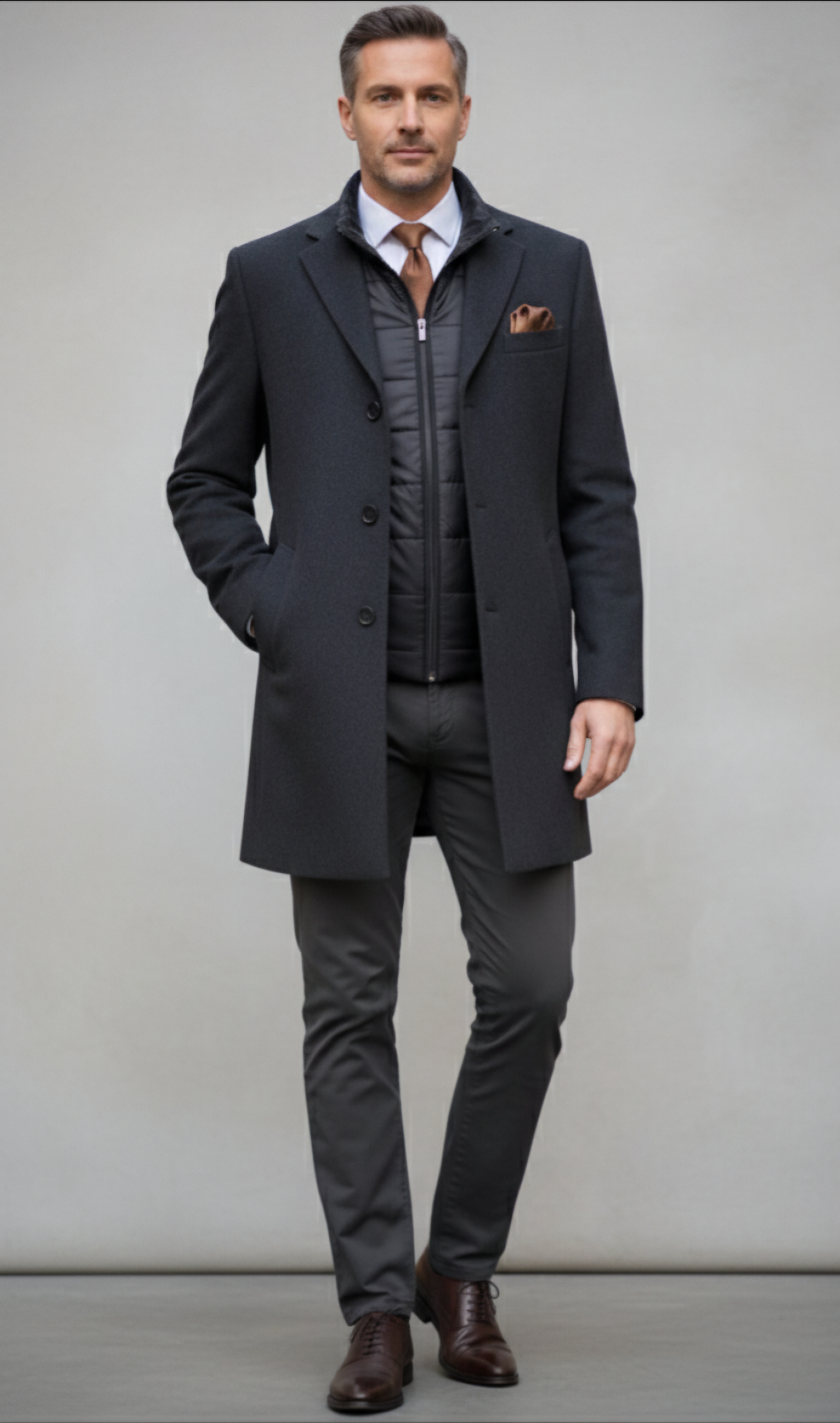 Szövetkabát kivehető orkán szélfogóval.Prémium minőségű alapanyagból készült elegáns kabát.