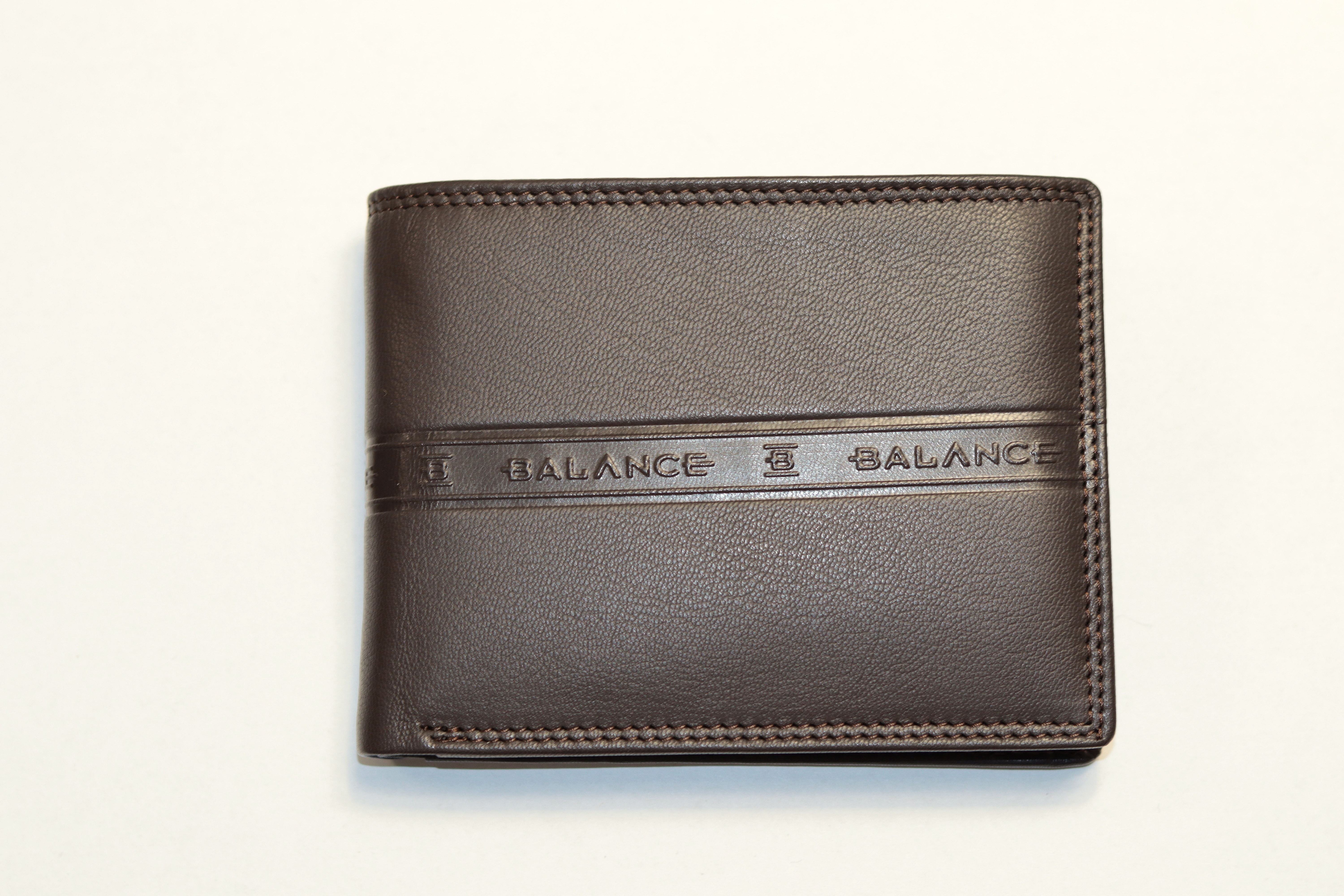 Bőr pénztárca, Balance márkalogóval mindkét oldalán. Belül számos kártyatartó lehetőséggel. Apró tartó tasak is van benne. Fekete és nagyon sötét barna színekben rendelhető. A képeken sajnos nagyon nehéz megkülönböztetni a színeket.