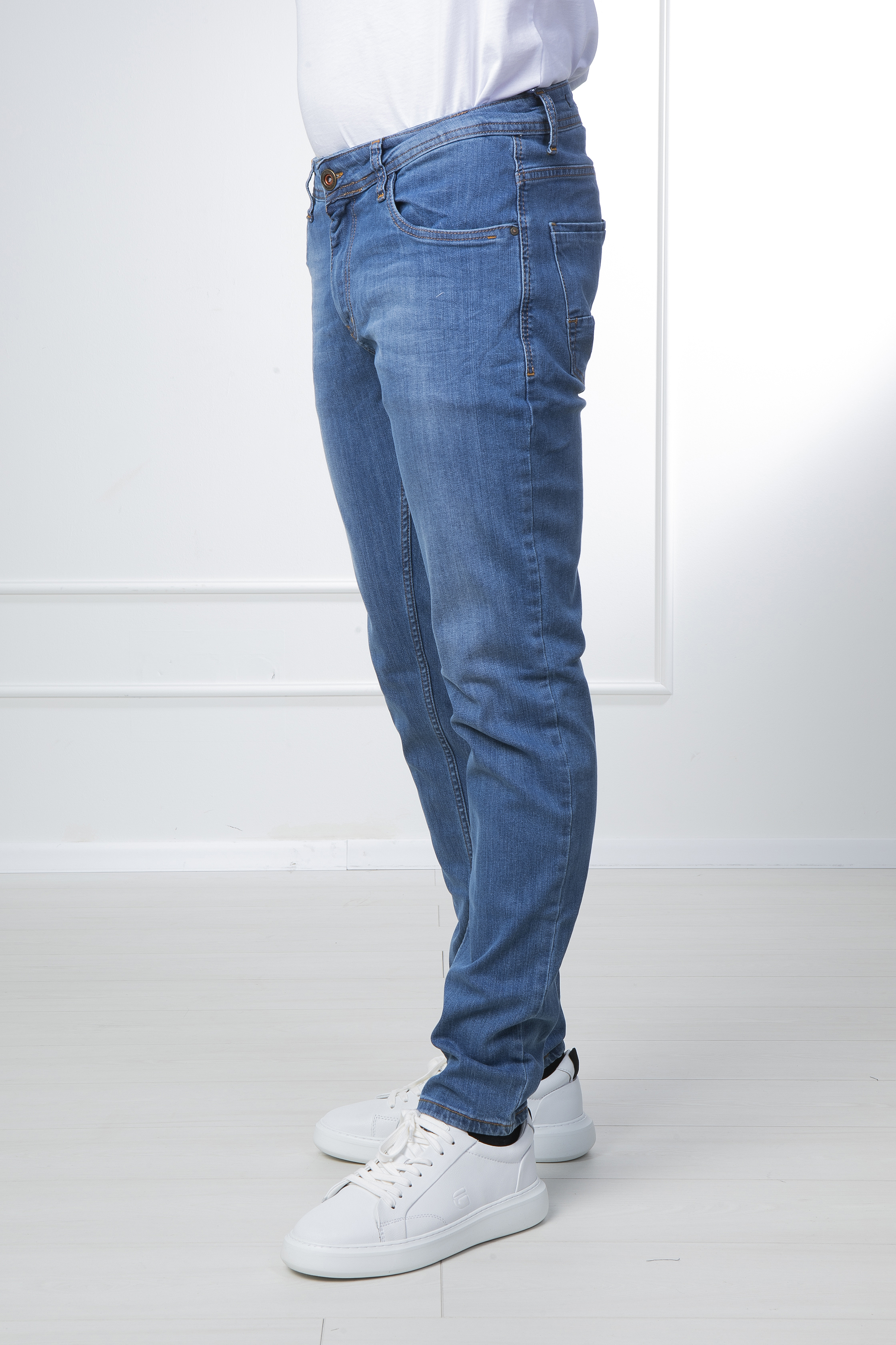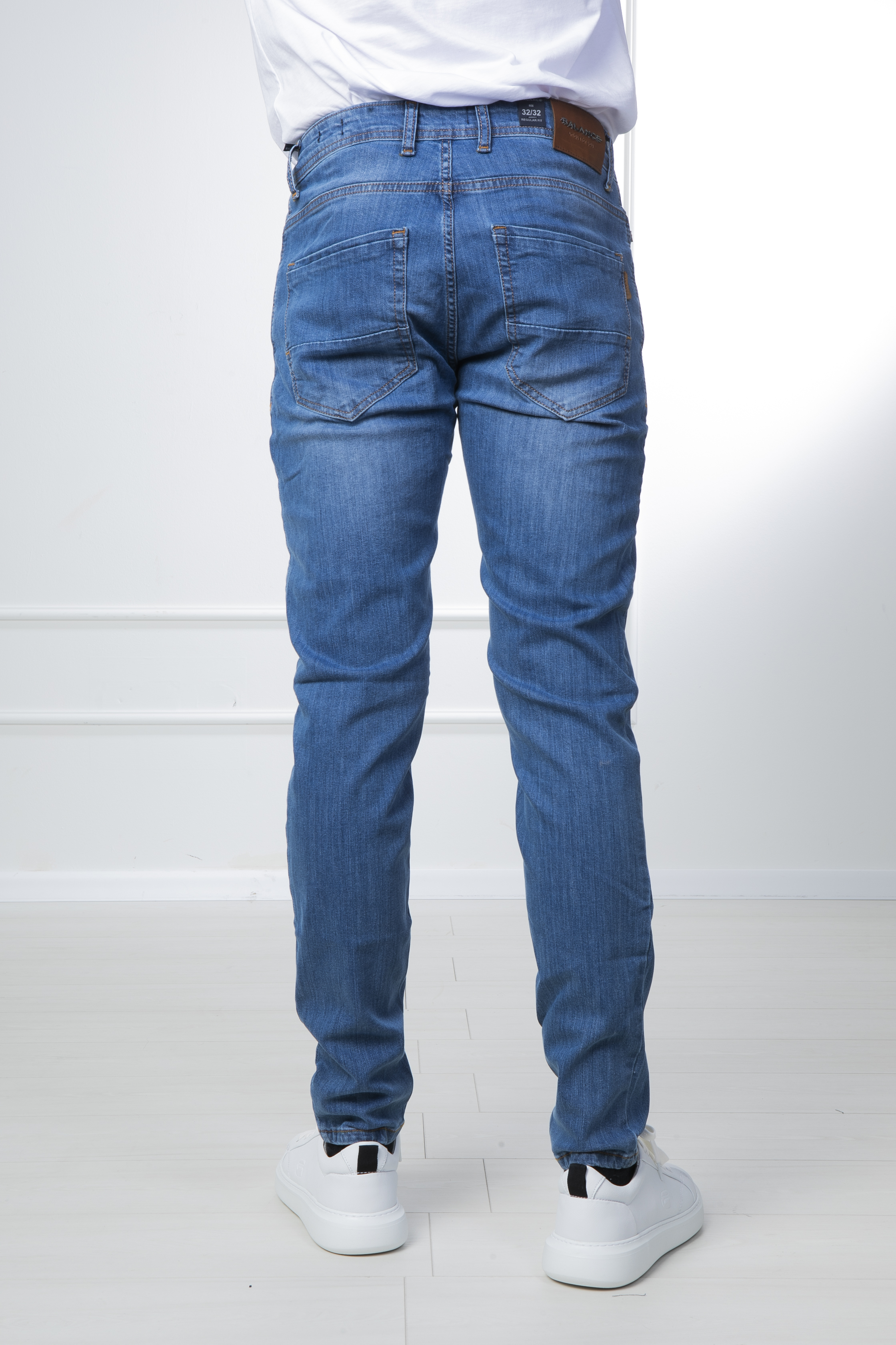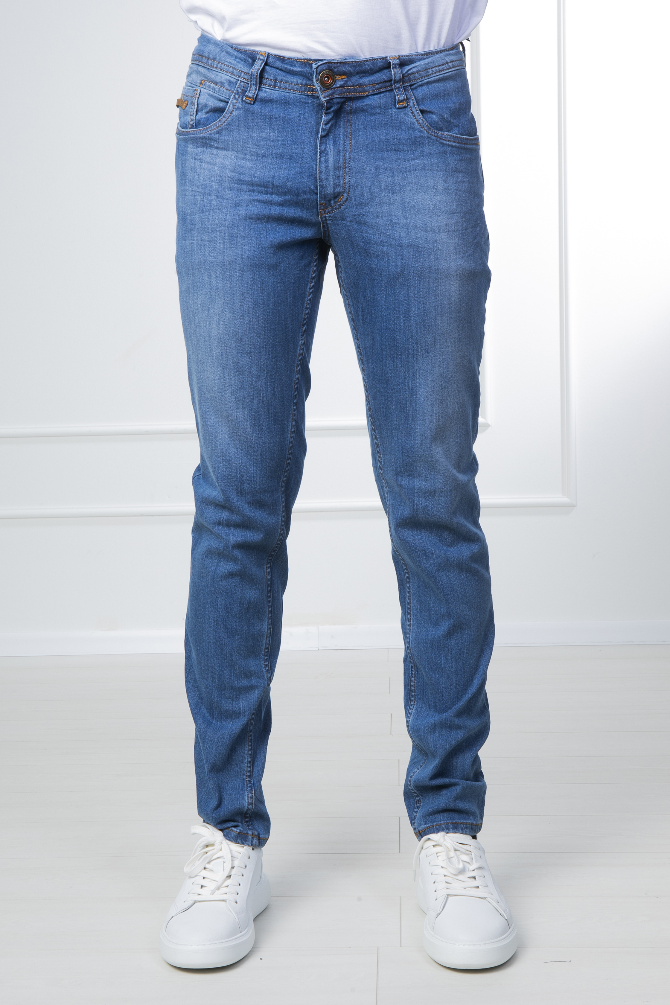 Regular fit (egyenes fazon) farmernadrág vékony,rugalmas anyagból. Igényes kiegészítőkkel és fém kellékekkel készült. Koptatás nélküli, kék nadrág, szaggatás nélkül. Ingekkel és pólókkal egyaránt hordható. 95% pamut 5% lycra