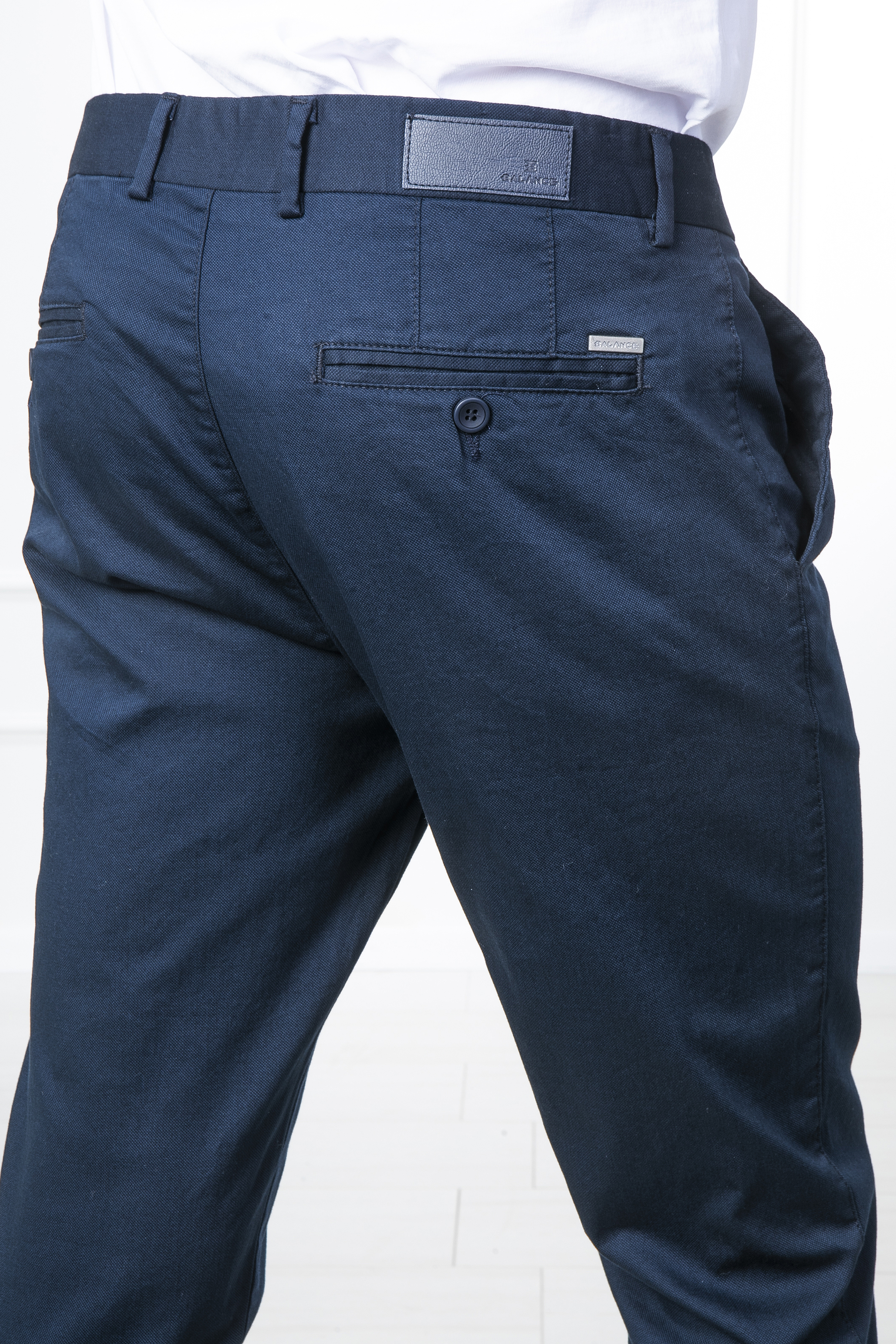 Svédzsebes vászonnadrág (chino). Hátul két paszpolos zsebbel. A zsebek felett szolid Balance fémlogó. Hátul a derékpánton bőrcímke található. Hétköznapi viselet, inggel és pulóverekkel, de akár zakóval is hordható. Vékony, rugalmas anyagból készült tavaszi-nyári nadrág. Slim fit. 97% pamut 3% lycra
