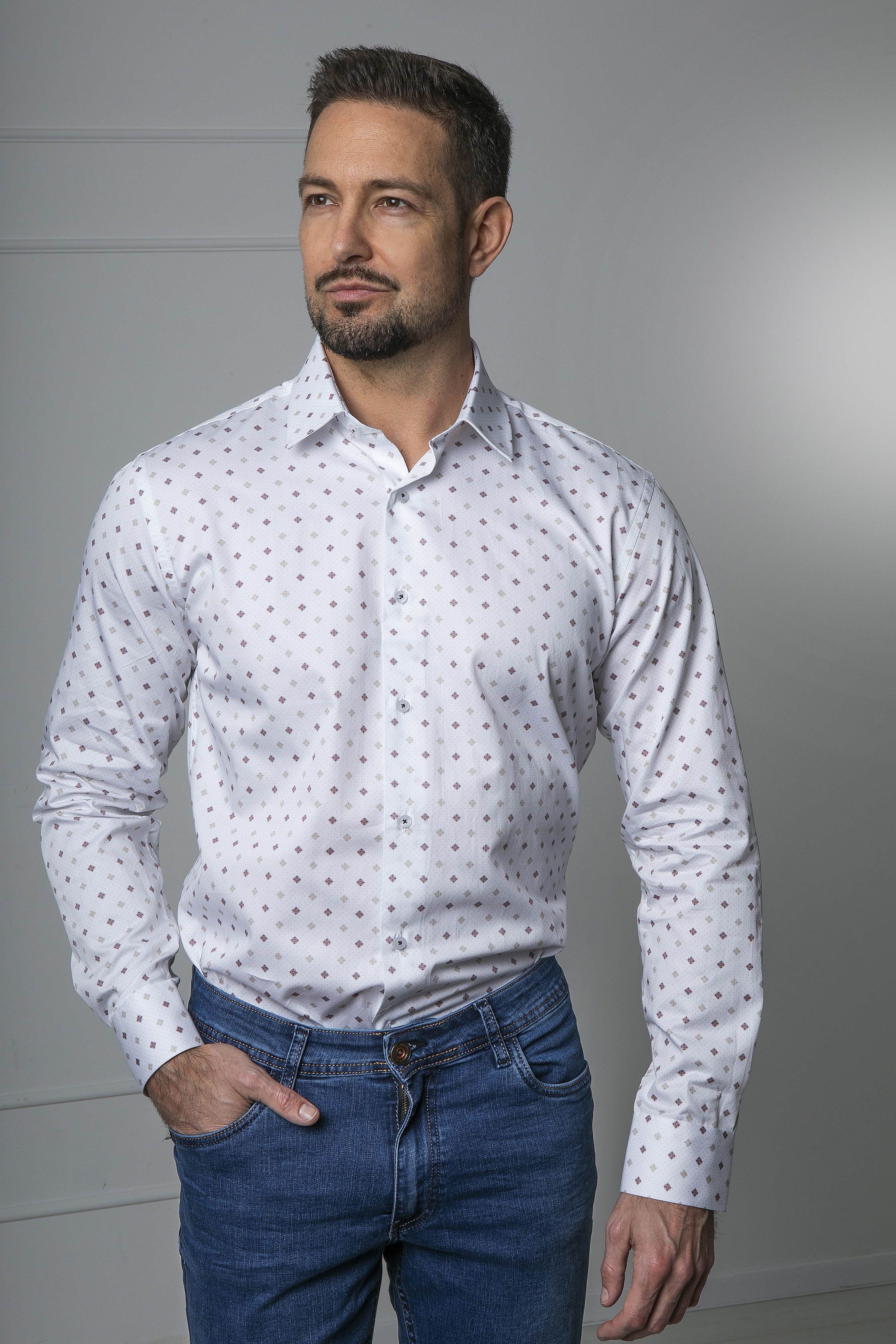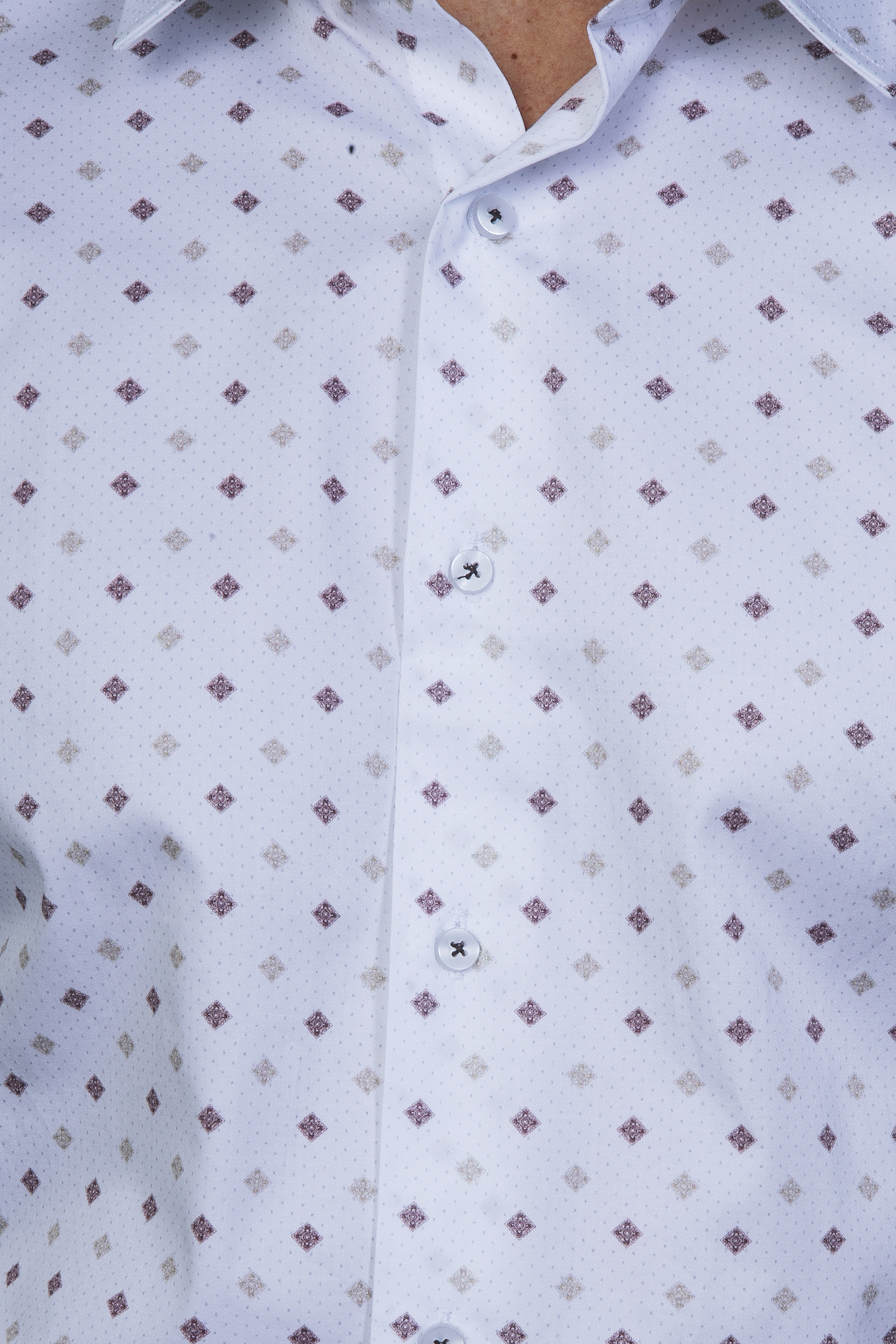 Nyomott mintás ing, karcsúsított szabással. Enyhén rugalmas alapanyag, kényelmes viselet. A digital print olyan technológia, ami részletgazdag nyomtatást eredményez az alapanyagra. Vasalás könnyített anyagból, pamut alapanyagból készült. Hordható magában is, de akár zakókkal is jól kombinálható. 100% pamut