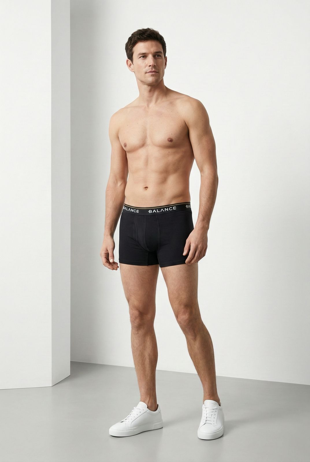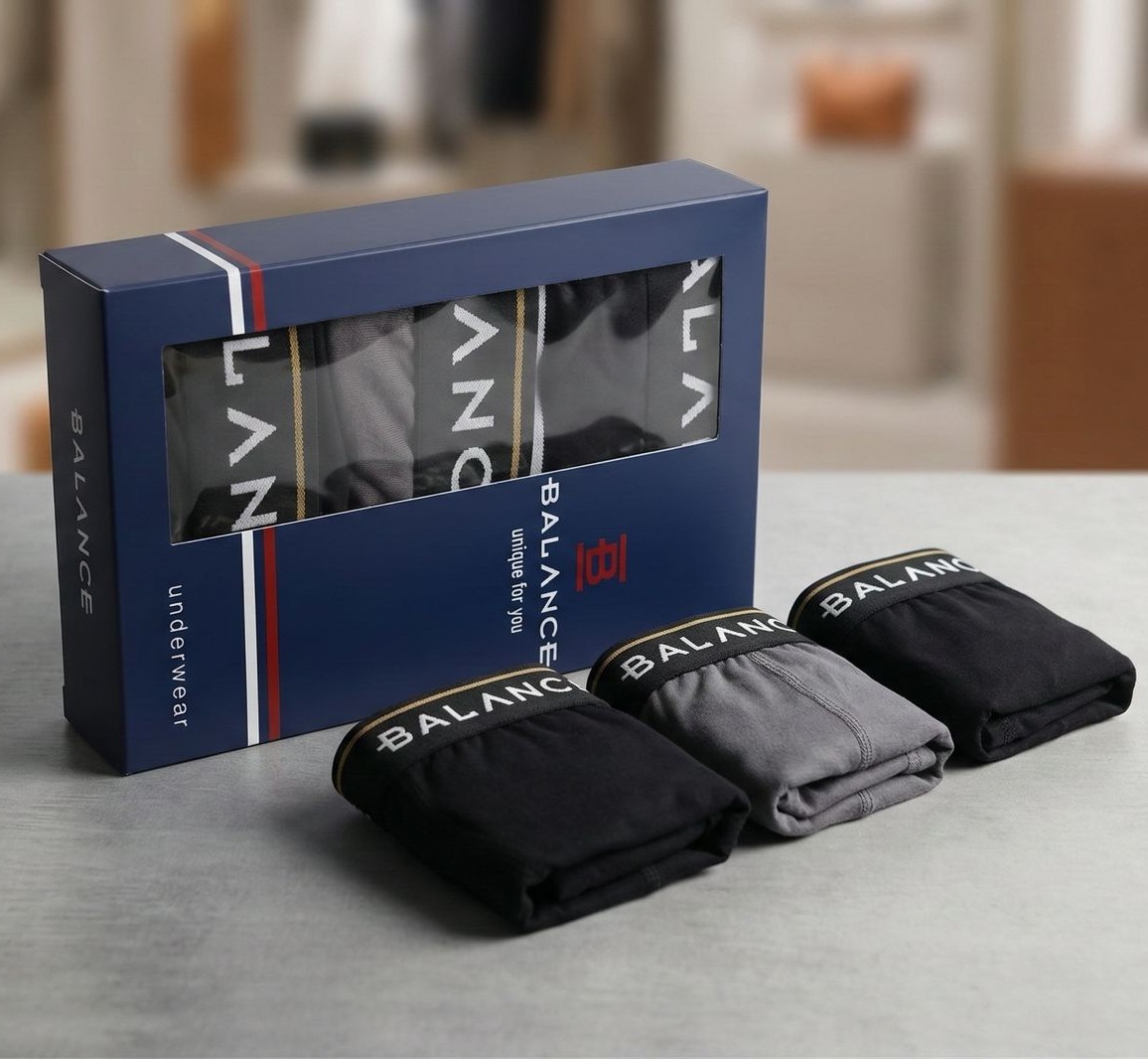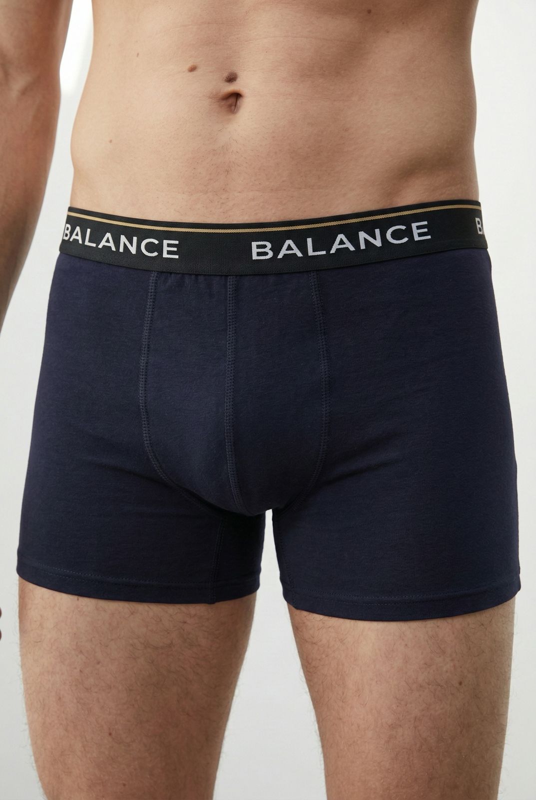 Férfi alsónadrág (boxer) Balance logó feliratos gumival. 3 db-os szett. A csomagban 2 db fekete és 1 db szürke boxer található.