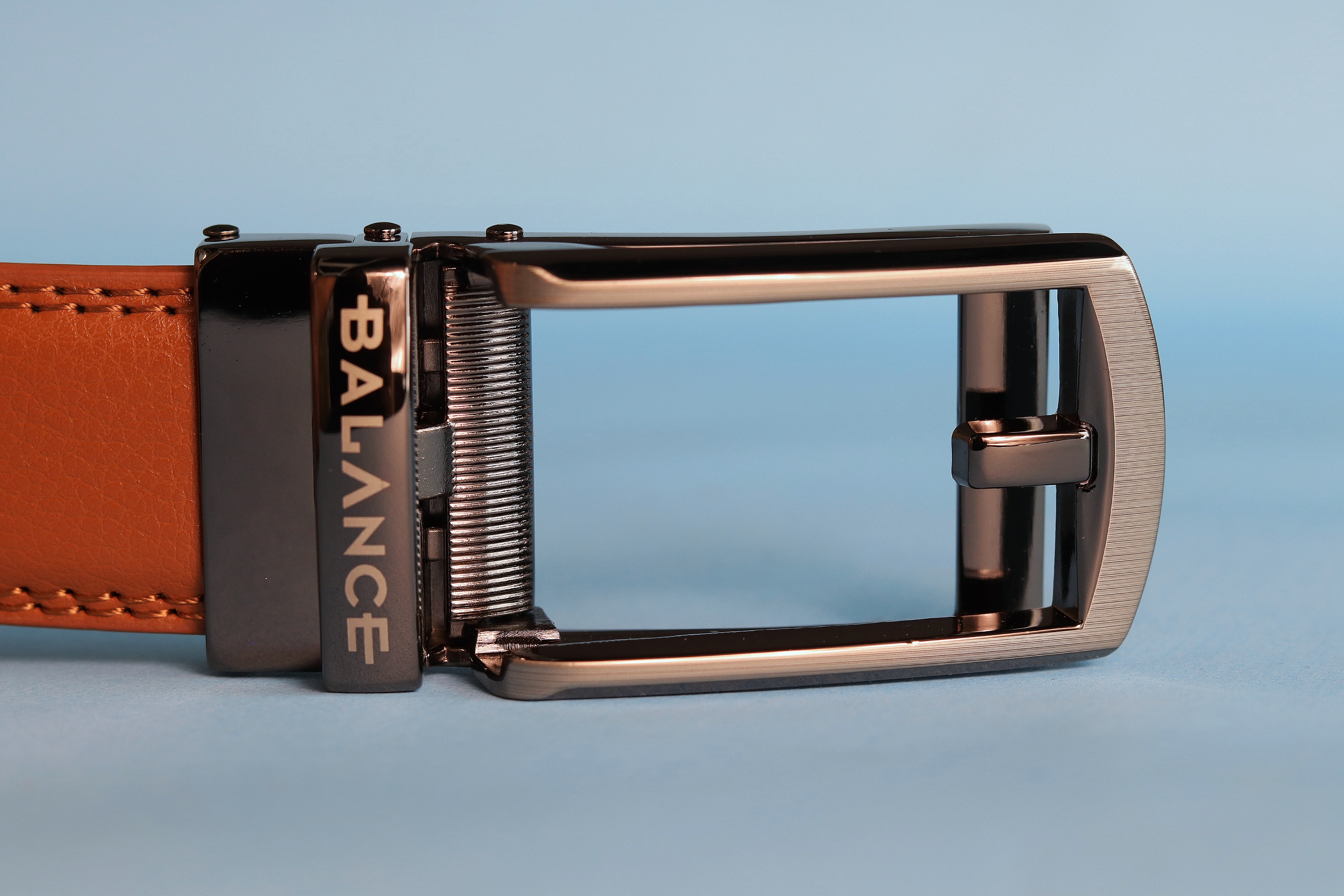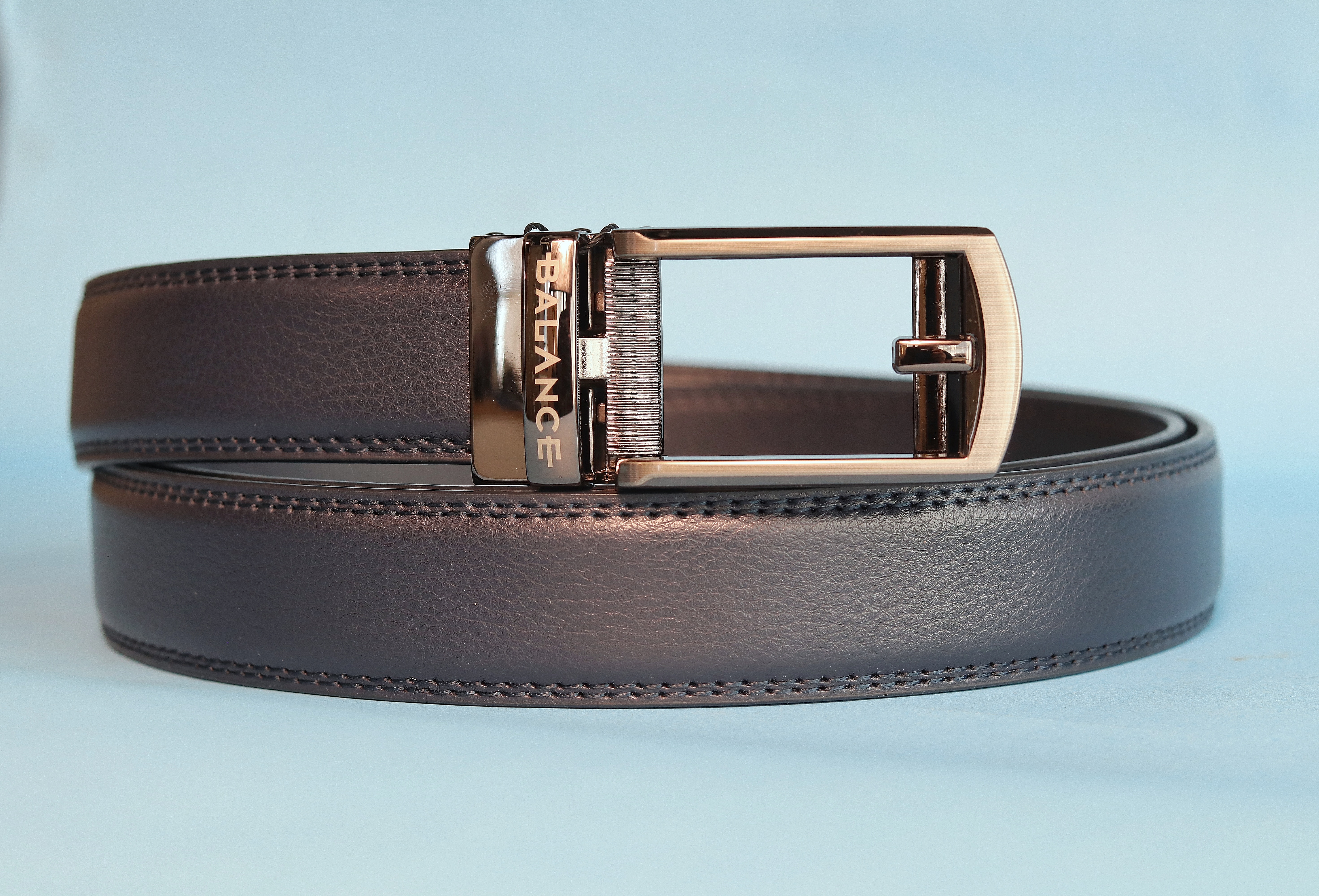 Automata csattos öv, fokozatmentesen állítható. Valódi bőrből készült a szíj része, ami 3 cm széles. Fém, szálcsiszolt, rozsdamentes csatt, becsatolva úgy néz ki, mintha hagyományos nyelves csatt lenne. A csatt könnyen lepattintható a szíj részről, utána akár egy ollóval  könnyen méretre igazítható. Az öv méretezése a szíj csatt nélküli hossza.