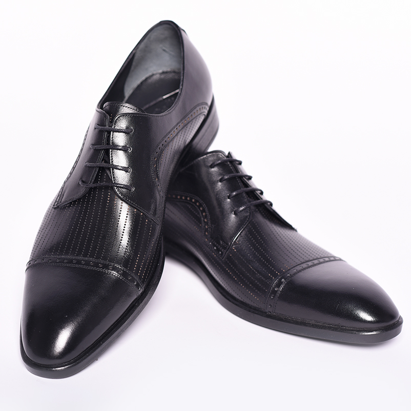 Elegáns bőr cipő. Alkalmi viselet. Remek választás öltönyökhöz, elegáns nadrágokhoz. Felső részén díszítő varrások vannak, ami kiemeli a szokványos cipők közül. Bőr felsőrész és gumi talp.