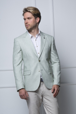 Pamut-len zakó, enyhén rugalmas alapanyagból. Bélés nélküli kivitel, kellemes nyári viselet.Kényelmes, jó szabású zakó, a hátán két slicc található. Igényes belső kidolgozással készült. Mintás bélés selyemmel készült. Ugyanabból az anyagból készül, mint a "SREM" nevű nadrágunk, így akár öltönyként is hordható. 60% pamut 20%len 17% PE 3% lycra. Slim fit