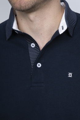 Galléros pamut pulóver. A gallér és a gombolópánt szolid csíkokkal van ellátva. Regular fazon (egyenes). Mellén kis B logó hímzés található. Egy mérettel kisebbet érdemes rendelni a megszokottnál. 100% pamut