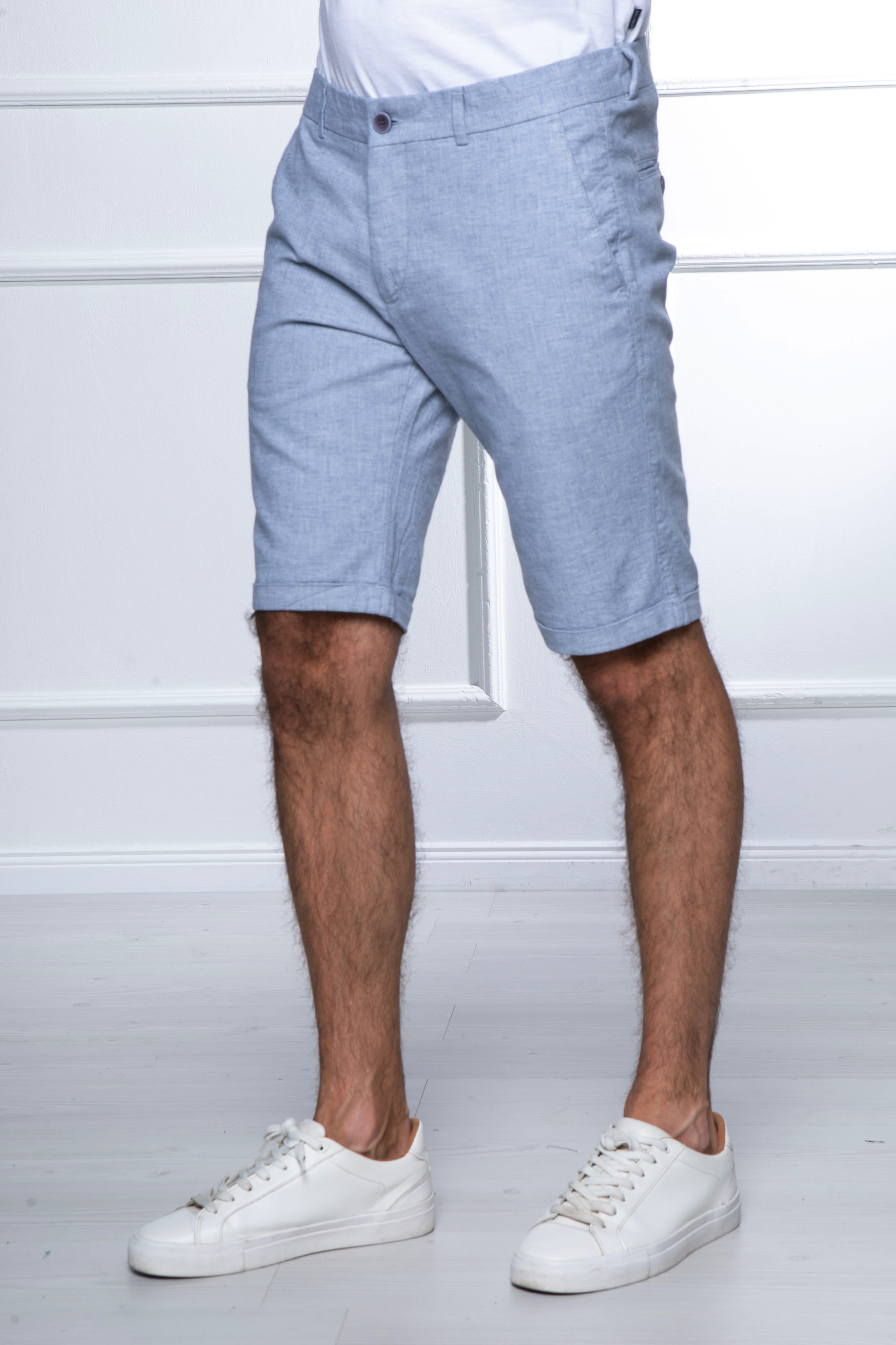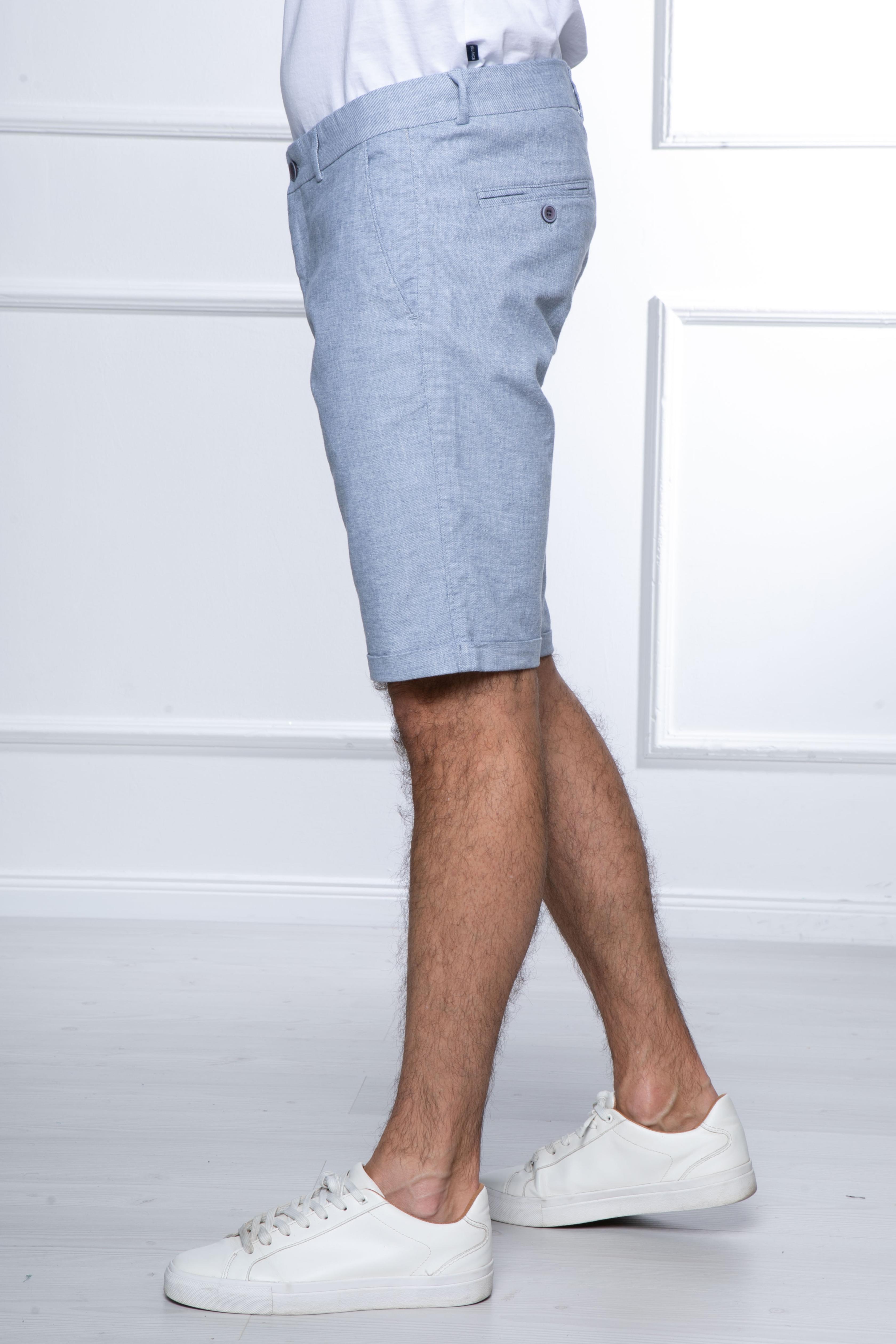 Len-vászon rövidnadrág, svédzsebes. Hátsó zseb felett színes vászon szalag és fémlogó található. Rugalmas anyagból készült, kényelmes viselet. 97% pamut 3% lycra. Slim fit