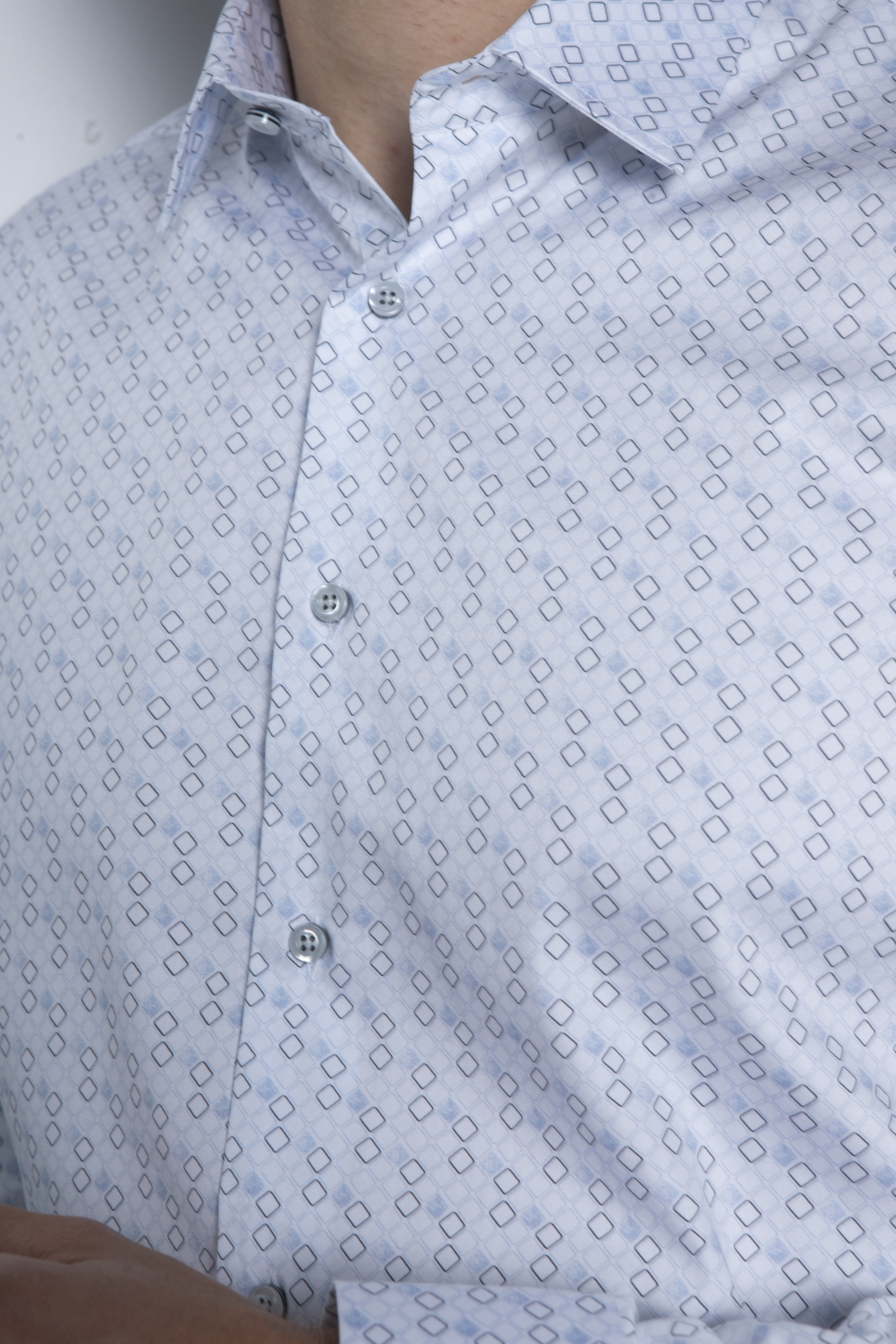 Nyomott mintás ing, karcsúsított szabással. Rugalmas alapanyag, kényelmes viselet. A digital print olyan technológia, ami részletgazdag nyomtatást eredményez az alapanyagra. Vasalás könnyített anyagból, pamut alapanyagból készült. Hordható magában is, de akár zakókkal is jól kombinálható. 100% pamut