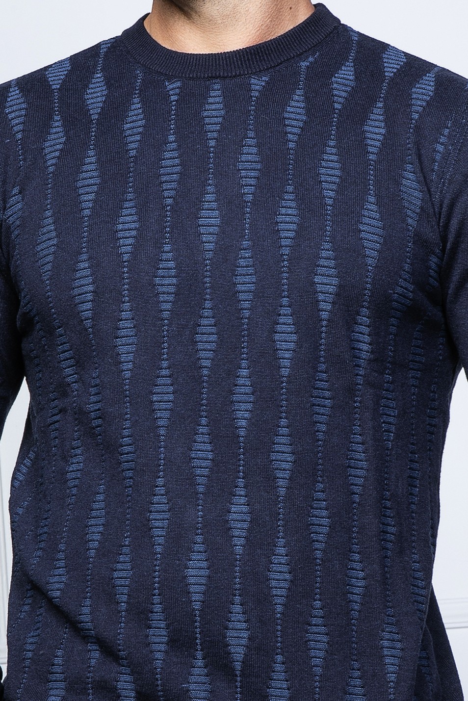 Csavart mintás kötött pulóver kerek nyakkal. Szolid fém logó található a passzé felett. 100% pamut. Slim fit