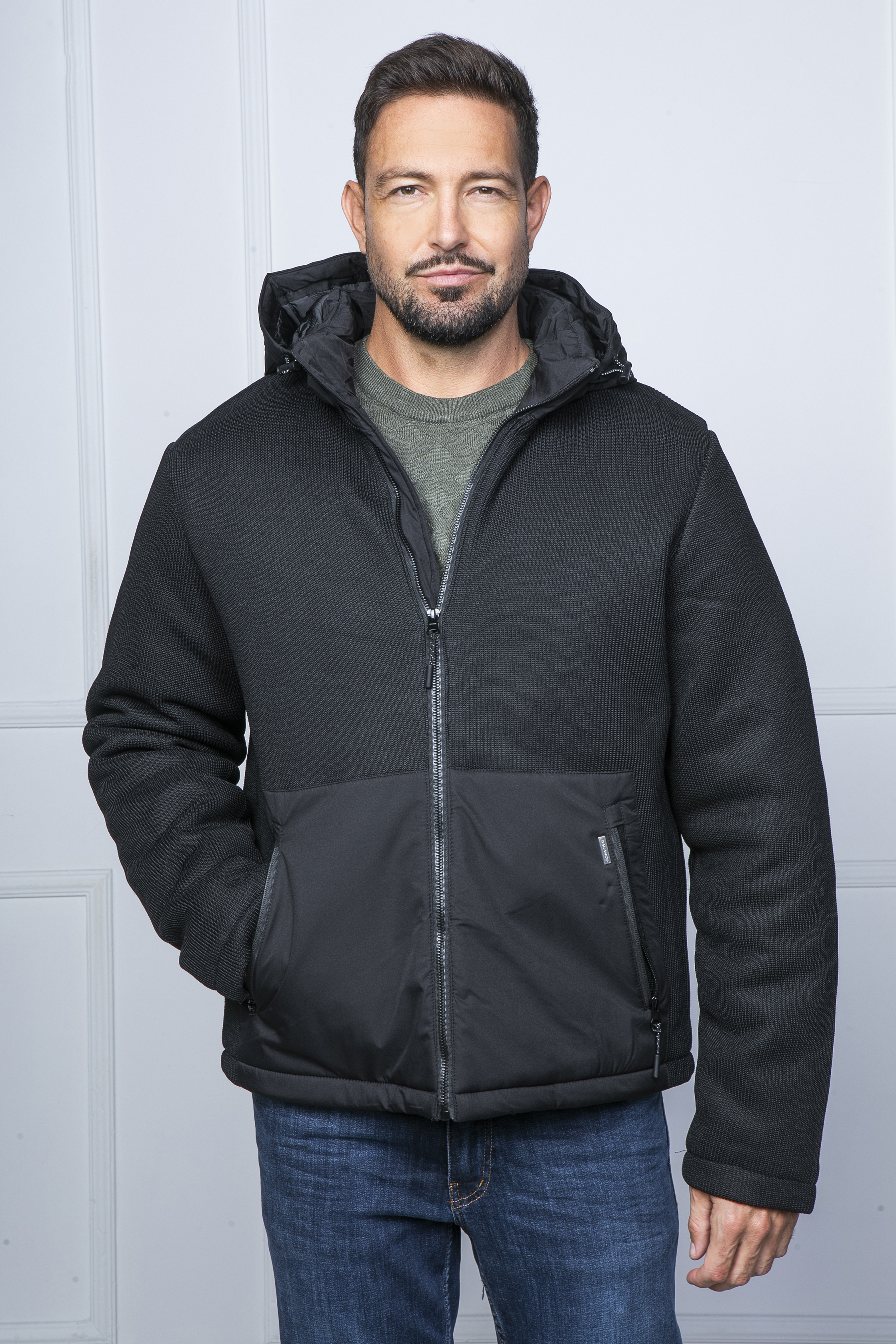 Kapucnis kabát vastag szövet anyagból. Elejét orkán anyagú rátett zseb található. Szolid fém márkalogóval a zseben. Közepesen vastag, enyhén télies időre ajánlott kabát. 100% PE