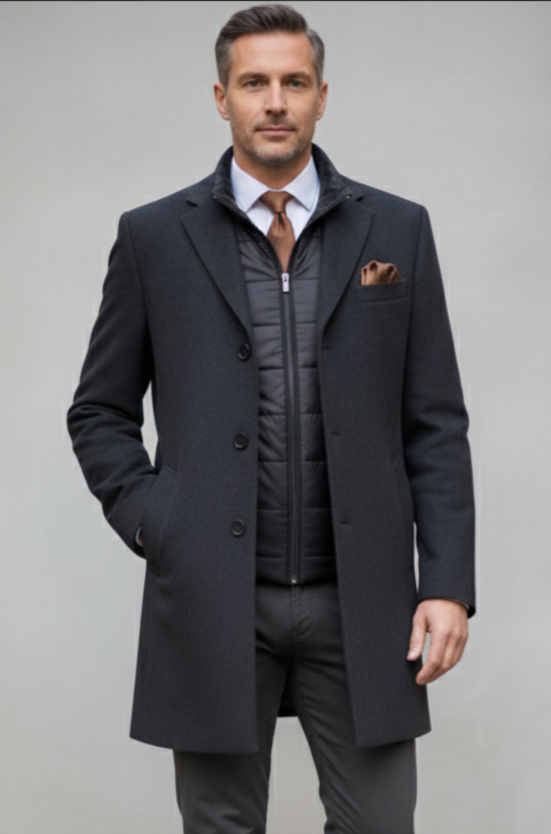 Szövetkabát kivehető orkán szélfogóval.Prémium minőségű alapanyagból készült elegáns kabát.