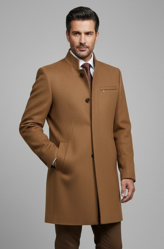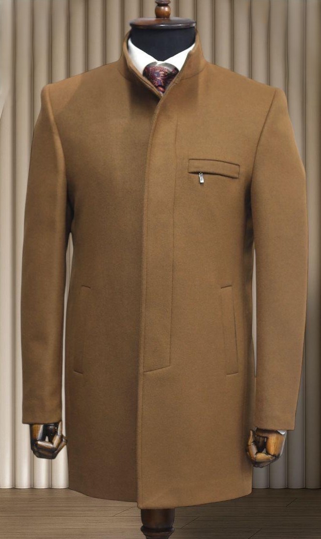 Állógalléros szövetkabát, prémium alapanyagból. Elegáns kabát, cipzáros szivarzsebbel a mellén és rejtett gombolással.