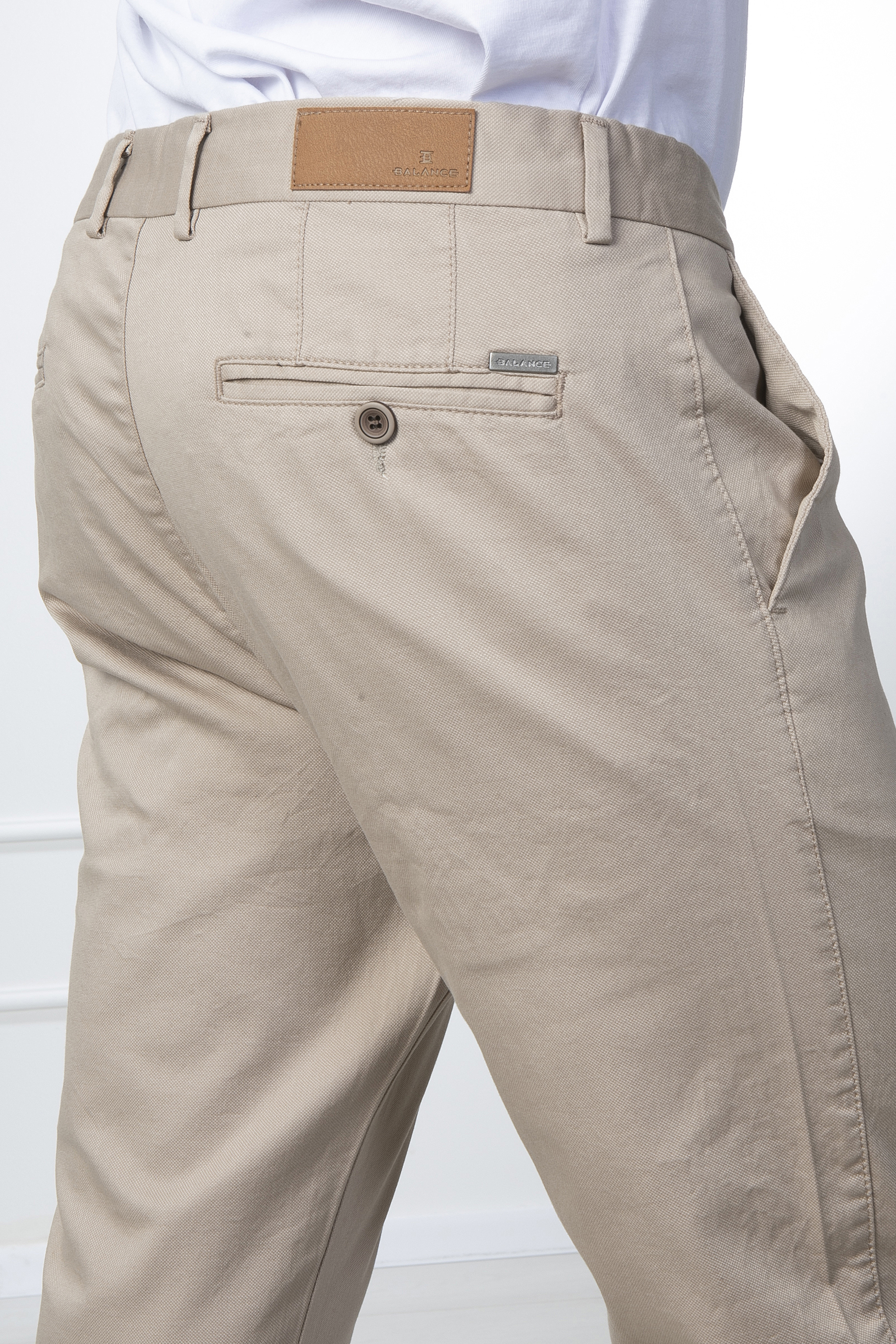 Svédzsebes vászonnadrág (chino). Hátul két paszpolos zsebbel. A zsebek felett szolid Balance fémlogó. Hátul a derékpánton bőrcímke található. Hétköznapi viselet, inggel és pulóverekkel, de akár zakóval is hordható. Vékony, rugalmas anyagból készült tavaszi-nyári nadrág. Slim fit. 97% pamut 3% lycra