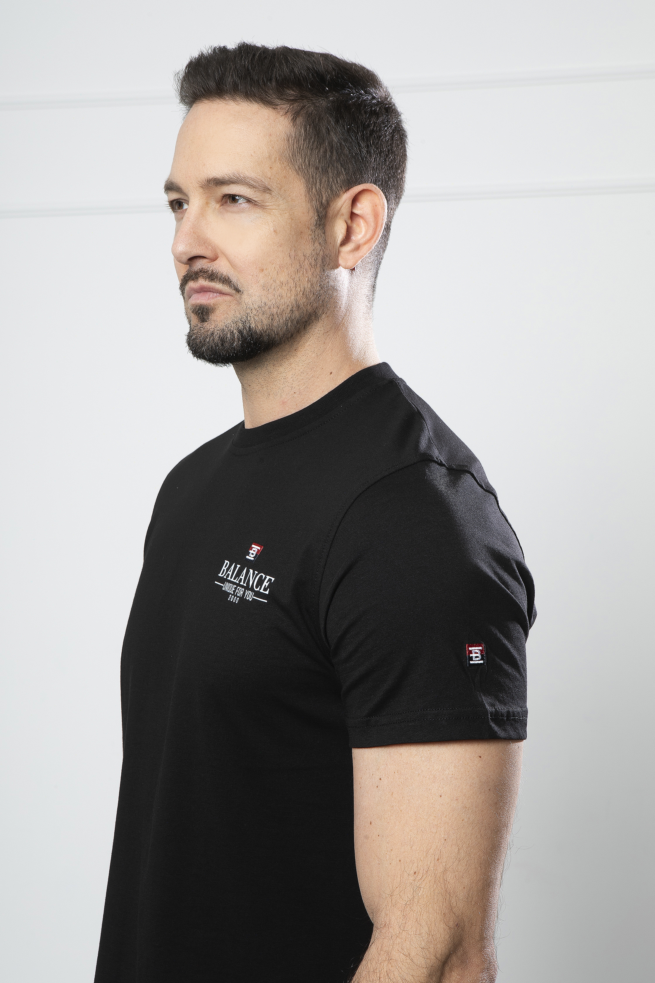 A modell 182 cm, 80kg, sportos testalkatú és L méretű póló van rajta a képeken.