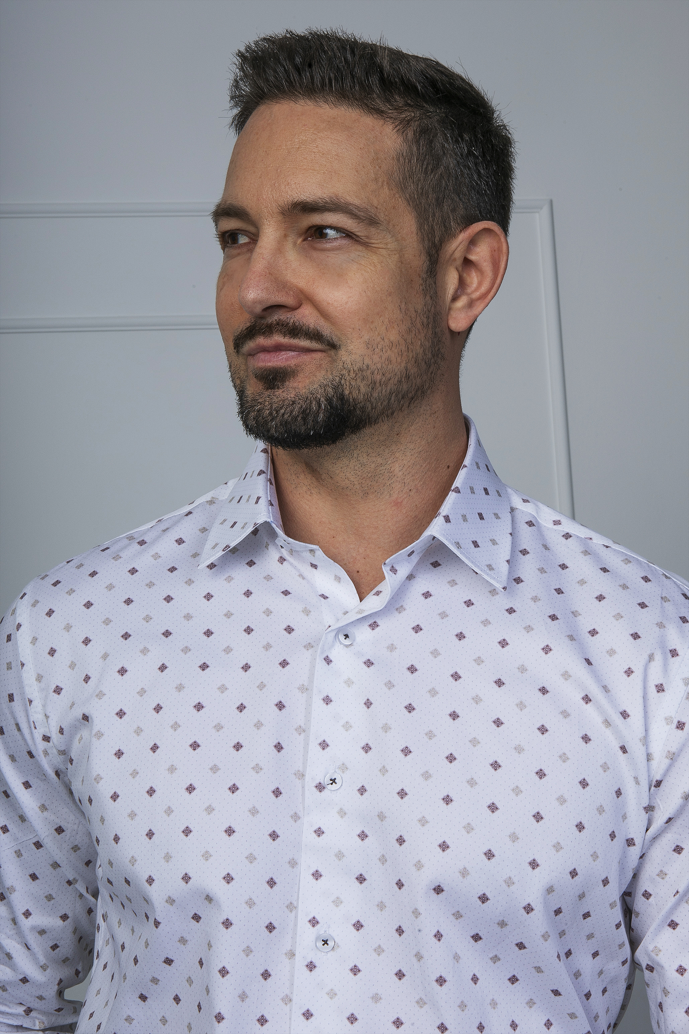 Nyomott mintás ing, karcsúsított szabással. Enyhén rugalmas alapanyag, kényelmes viselet. A digital print olyan technológia, ami részletgazdag nyomtatást eredményez az alapanyagra. Vasalás könnyített anyagból, pamut alapanyagból készült. Hordható magában is, de akár zakókkal is jól kombinálható. 100% pamut
