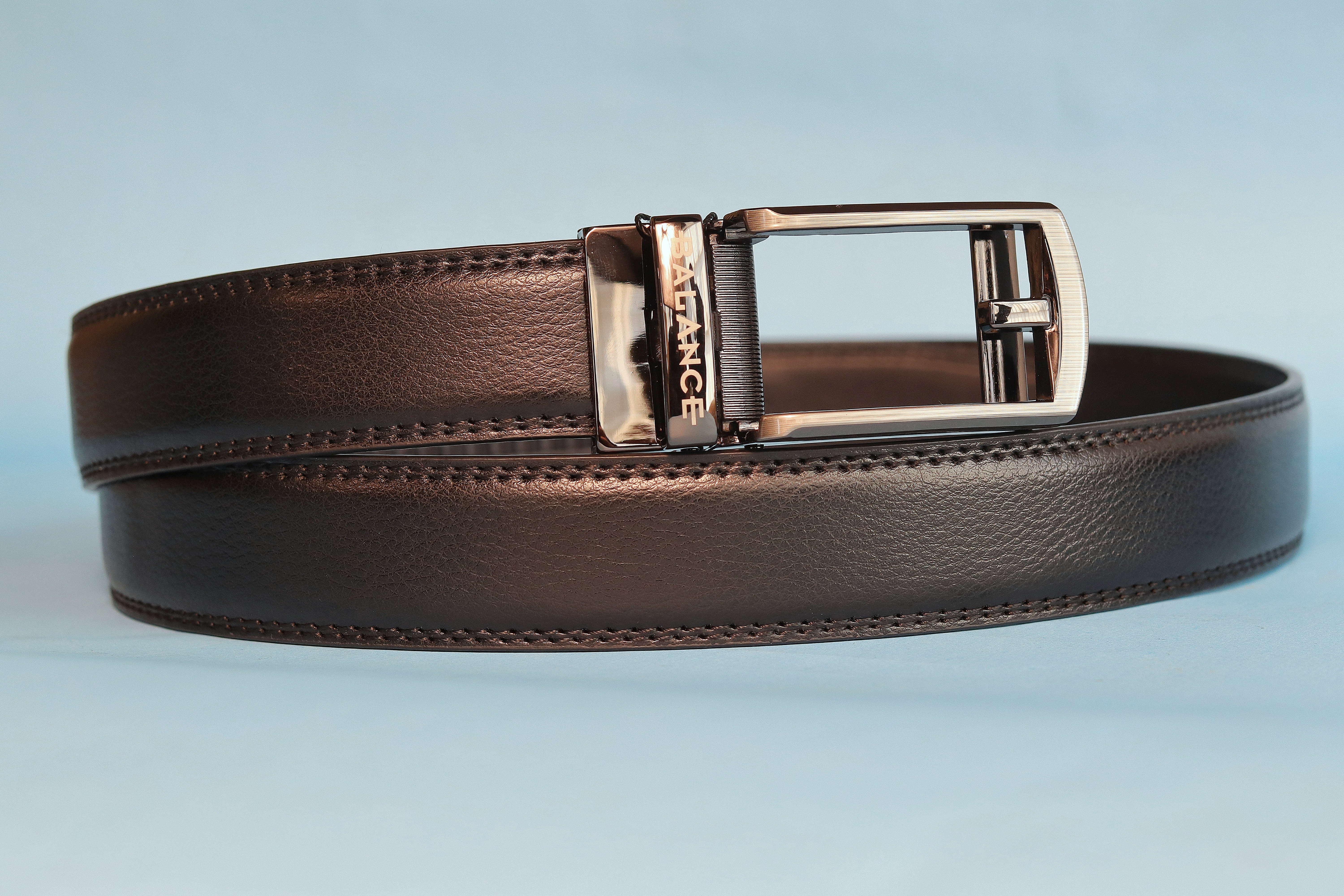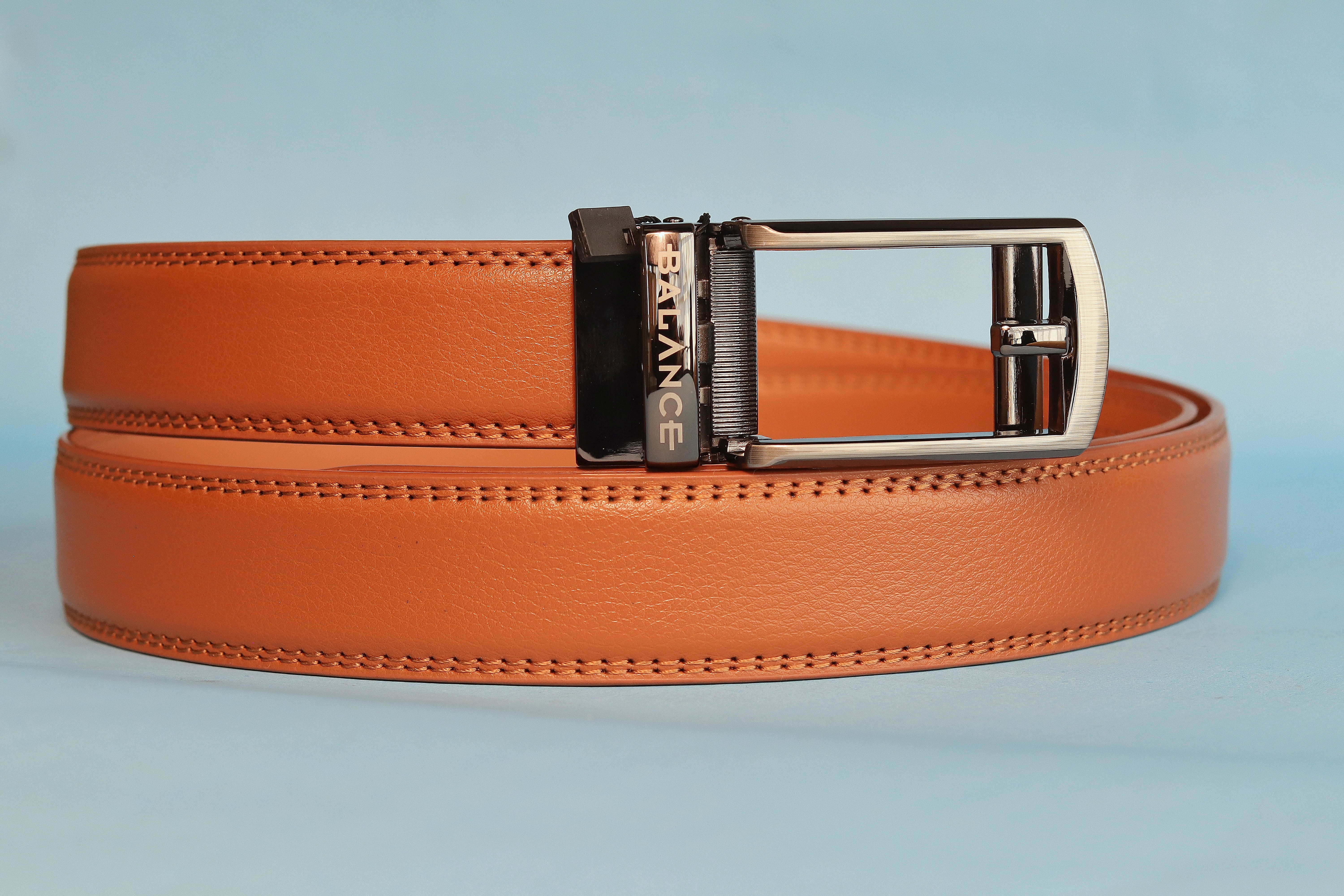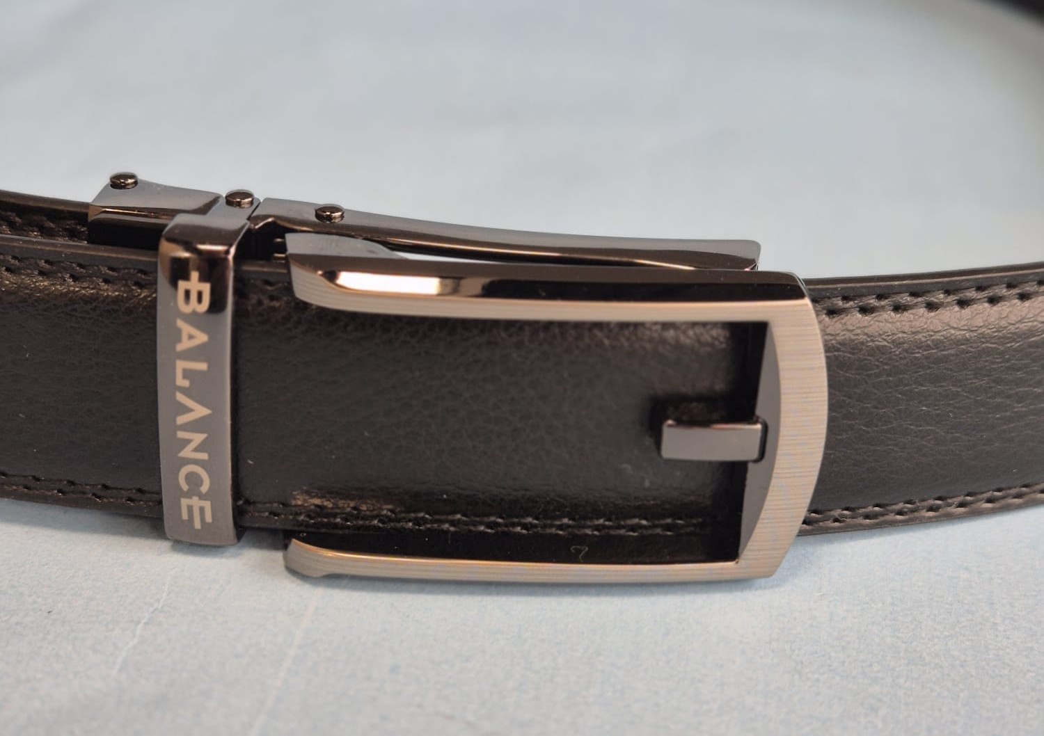 Automata csattos öv, fokozatmentesen állítható. Valódi bőrből készült a szíj része, ami 3 cm széles. Fém, szálcsiszolt, rozsdamentes csatt, becsatolva úgy néz ki, mintha hagyományos nyelves csatt lenne. A csatt könnyen lepattintható a szíj részről, utána akár egy ollóval  könnyen méretre igazítható. Az öv méretezése a szíj csatt nélküli hossza.